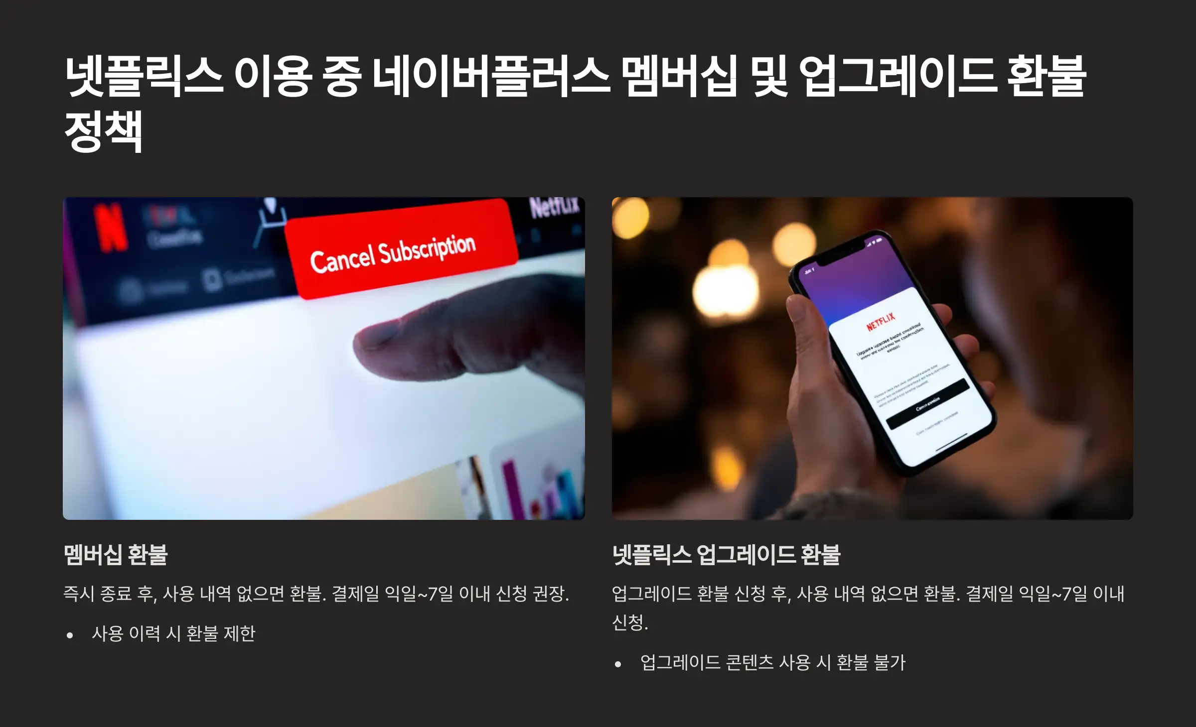 네이버플러스 멤버십 및 넷플릭스 업그레이드 환불 FAQ