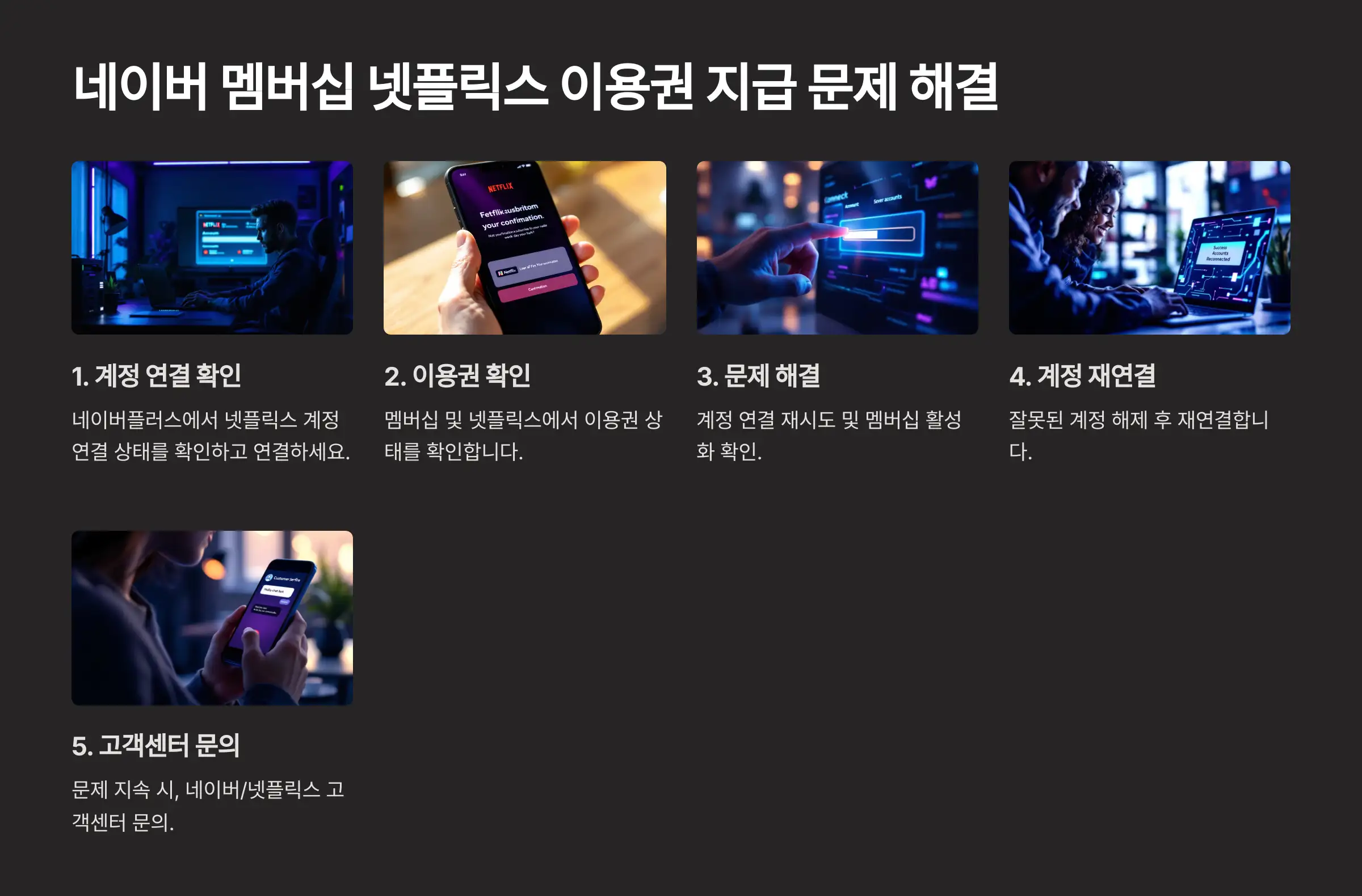 A5. 연결된 계정을 다시 확인하고, 문제가 지속되면 네이버 고객센터 또는 넷플릭스 고객센터에 문의하세요.