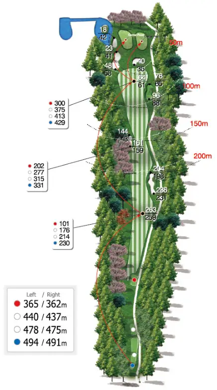 거리: Blue 494~497m / White 478~475m / Red 365~362m