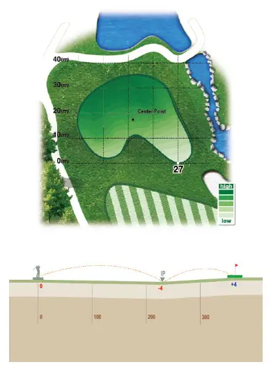 - 그린 주변 러프와 경사면이 심하므로 어프로치 정확도 필요