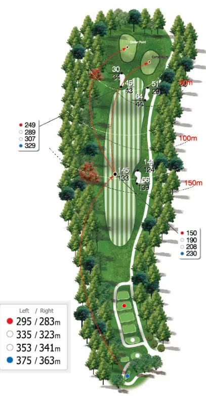 거리: Blue 375m / White 353~341m / Red 295~283m