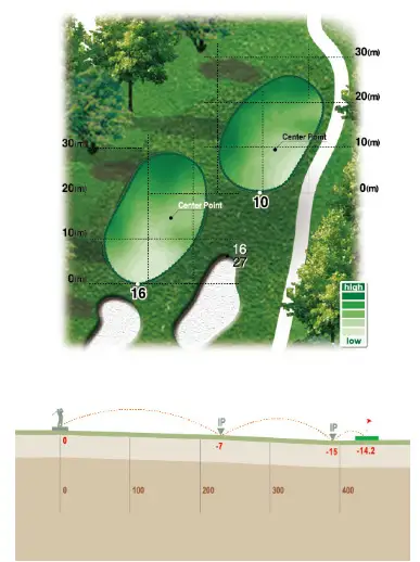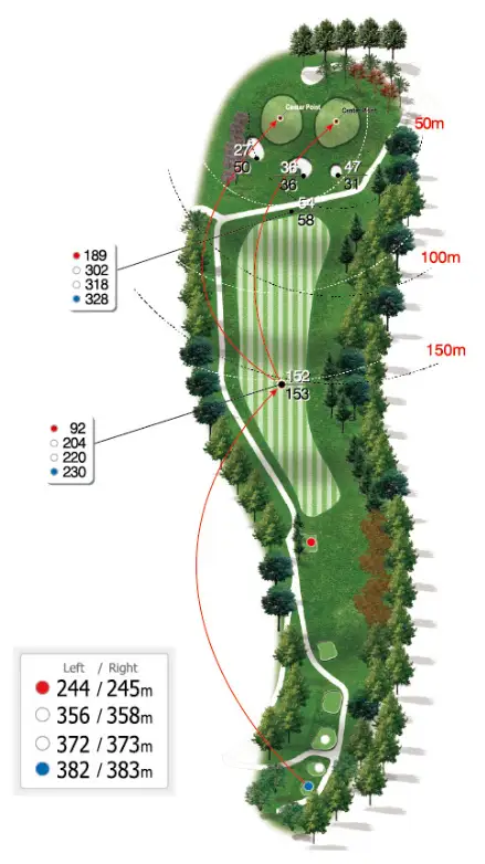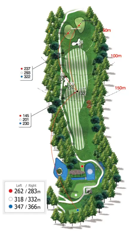 거리: Blue 347~366m / White 318~332m / Red 262~283m