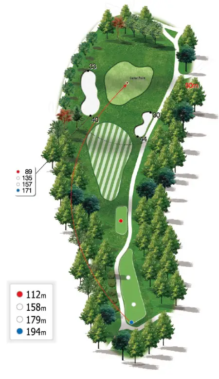 거리: Blue 194m / White 179~158m / Red 112m
