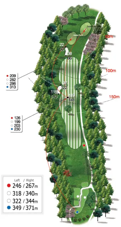 거리: Blue 349~371m / White 322~344m / Red 246~267m