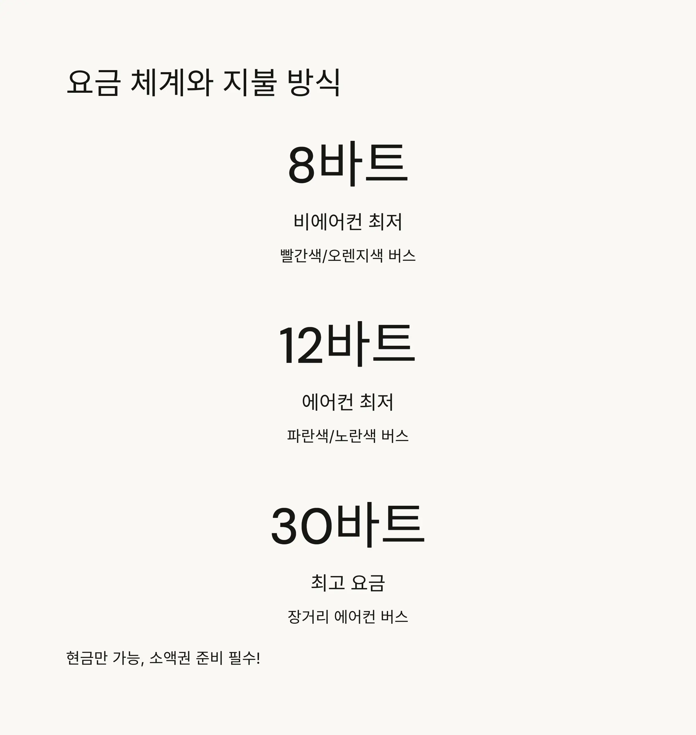 | 버스 유형 | 요금 | 지불 방식 |