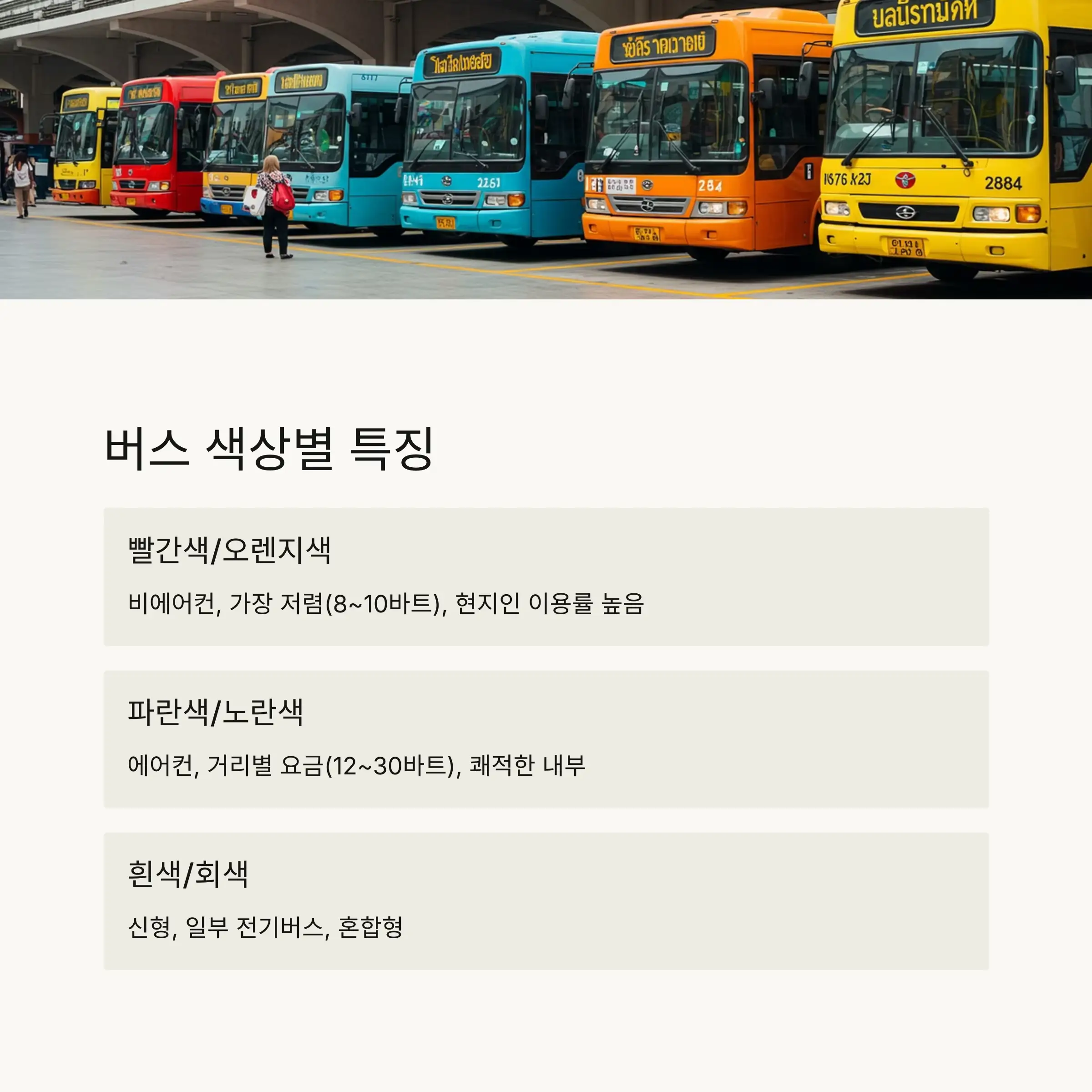 🚌 방콕 버스 색상별 특징 정리표 🎨
