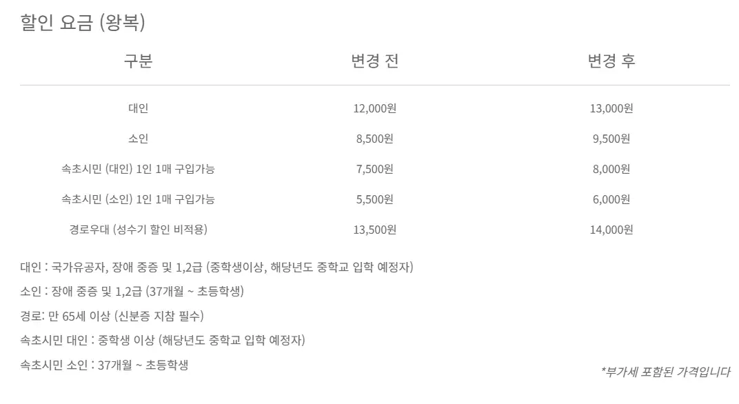 | 구분 | 일반요금 | 할인요금 | 비고 |