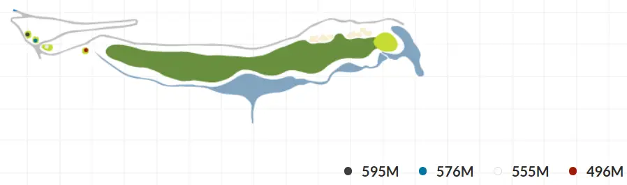 두 번째로 어려운 홀은 HDCP 2인 9번 홀이에요. 595미터(블랙 티 기준)의 긴 거리와 오른쪽 전체가 물로 이어진 위험 요소가 있어요. 비록 그린이 비교적 평평하지만, 긴 거리와 워터해저드로 인한 심리적 부담이 스코어에 영향을 미칠 수 있어요. 파5 홀이지만 욕심내지 말고 안전하게 3타로 그린에 올리는 전략이 중요합니다. 💧
