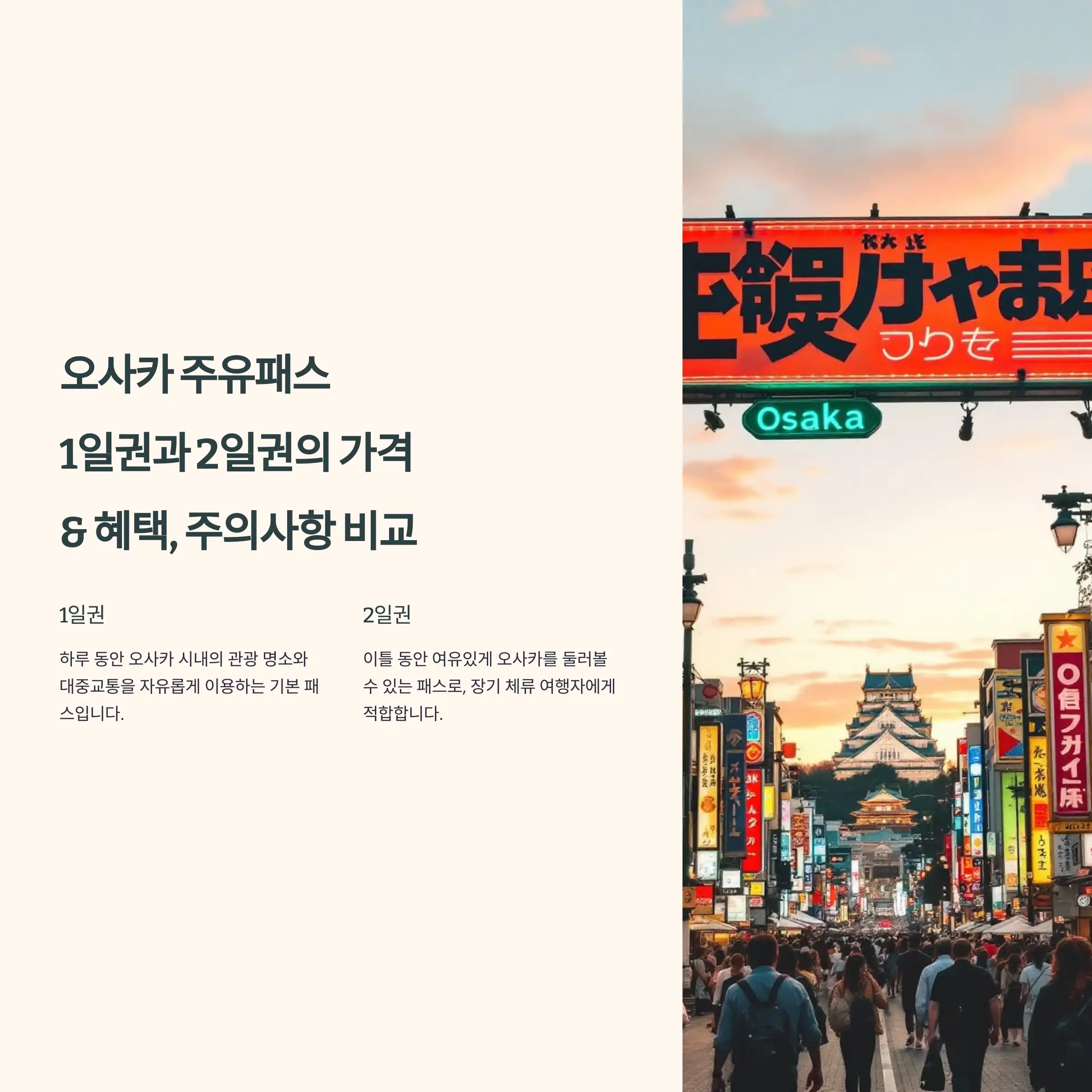 오사카 주유패스 1일권과 2일권 비교 FAQ