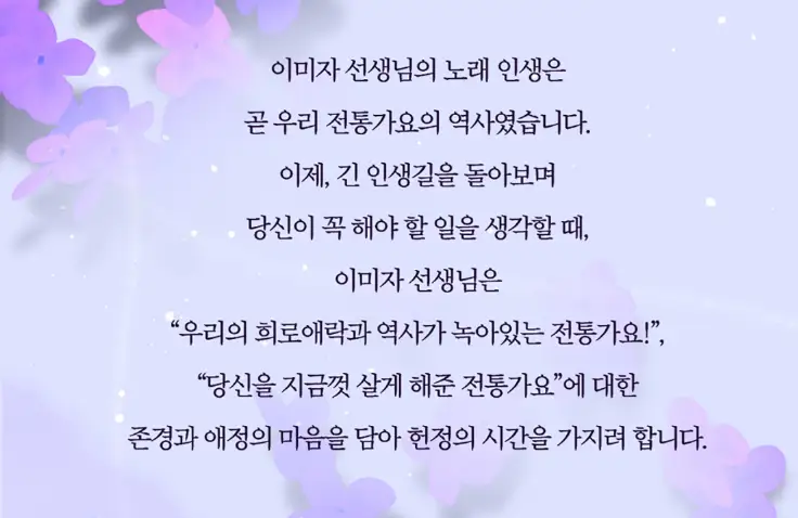 그녀의 가수 인생을 마무리하는 헌정공연 '맥을 이음'은 단순한 콘서트가 아니라, 전통가요의 가치를 되새기고 계승하는 뜻깊은 자리입니다.