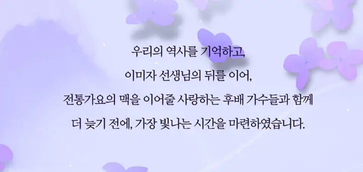 그녀의 가수 인생을 마무리하는 헌정공연 '맥을 이음'은 단순한 콘서트가 아니라, 전통가요의 가치를 되새기고 계승하는 뜻깊은 자리입니다.