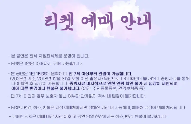 🔹 휠체어석은 온라인 예매 불가 → 세종문화회관 고객센터(☎ 02-399-1000)로 전화 예매 필수