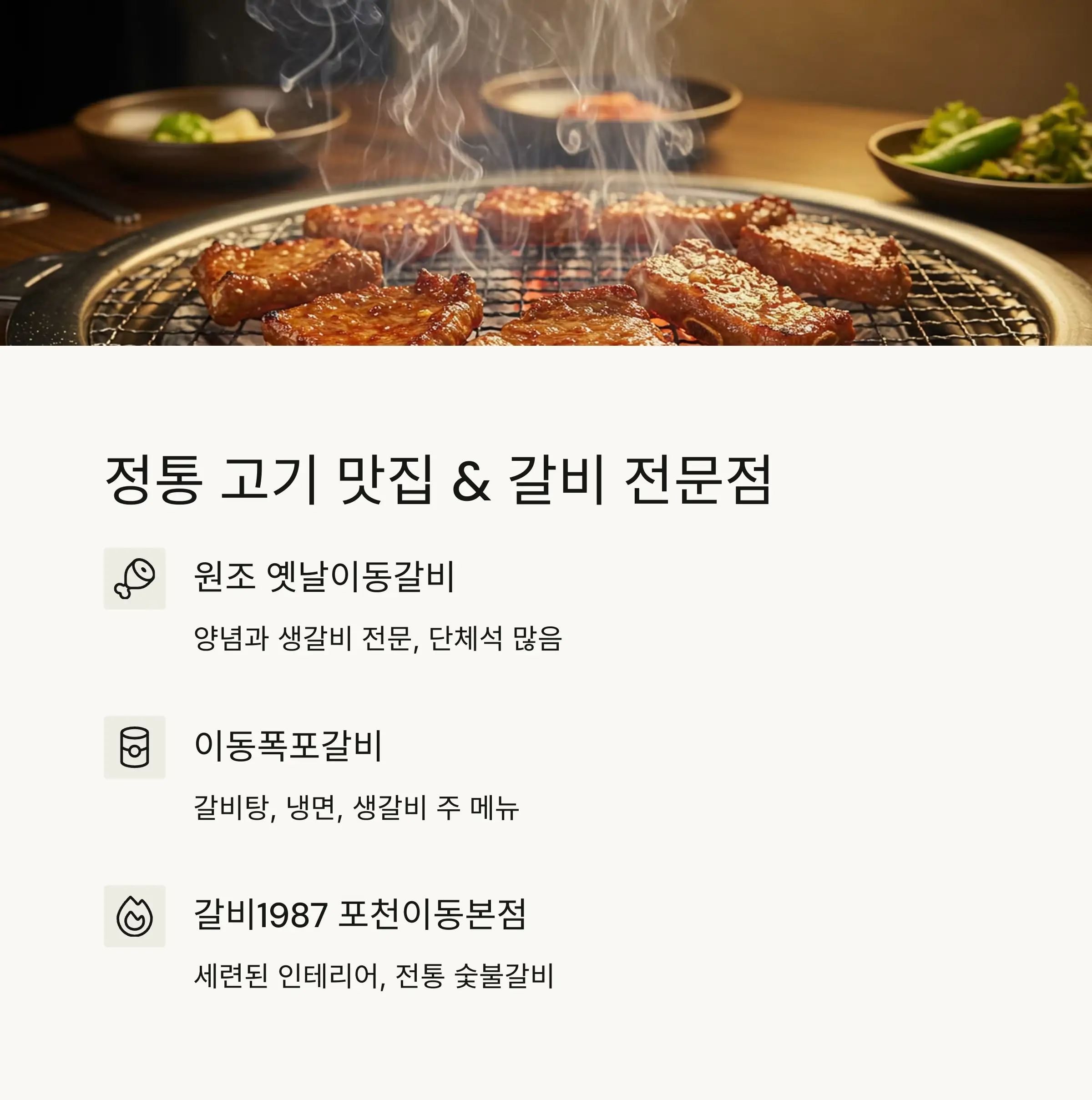 A6. 원조 옛날이동갈비와 갈비1987이 포천 이동갈비 원조 명가예요.
