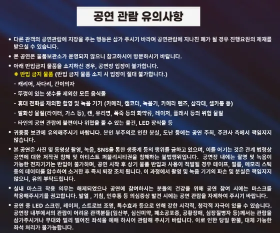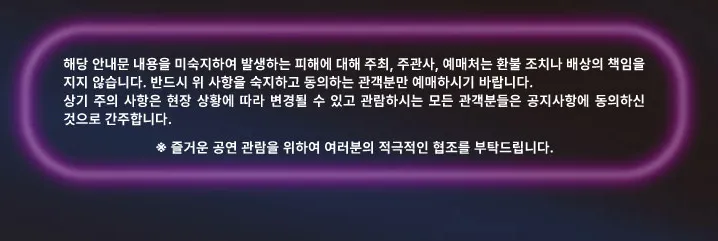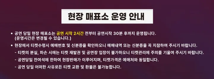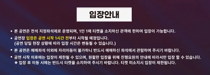 | 구분 | 기간 | 시간 | 당일 공연 정보 |
