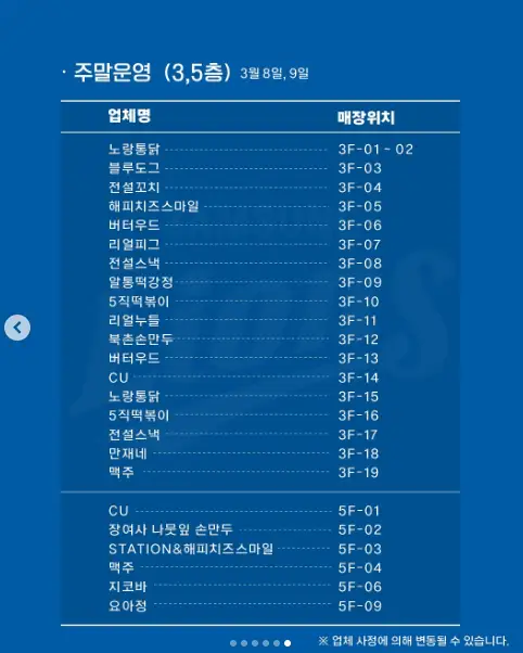 - VIP, 블루존, 중앙 테이블 등 일부 좌석은 운영되지 않음